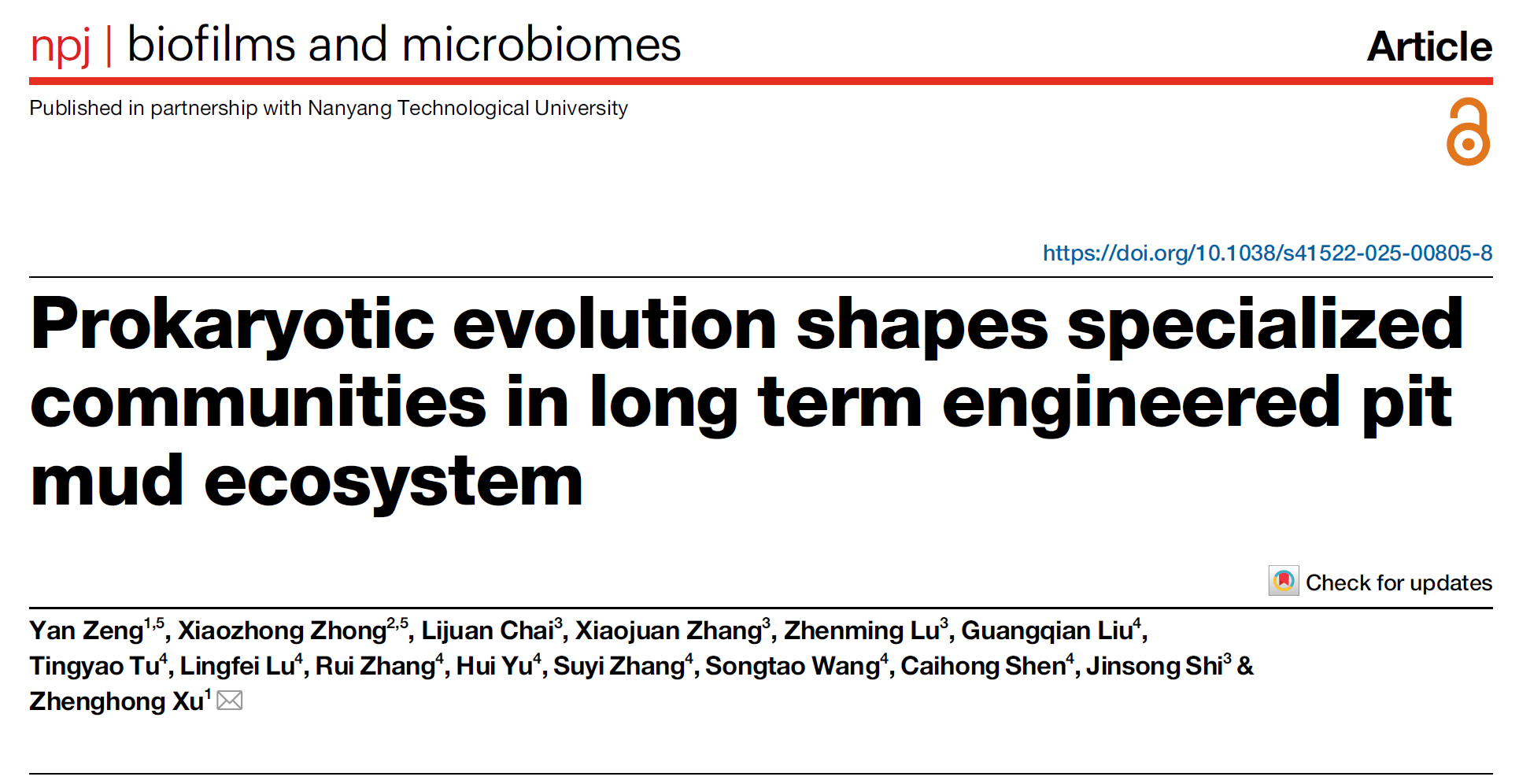 近日,四川大学先进酿造科技创新中心许正宏教授团队联合固态酿造国家工程技术研究中心沈才洪正高工团队在国际TOP期刊《npj Biofilms and Microbiomes》(Q1,IF=9.2)上发表了题为“Prokaryotic evolution shapes specialized communities in long term engineered pit mud ecosystem(长期原核微生物演化塑造了窖泥生态系统中的特化群落)”的研究论文。国家固态酿造工程技术研究中心常务副主任张宿义正高工、江南大学柴丽娟副研究员等共同参与了此项研究。