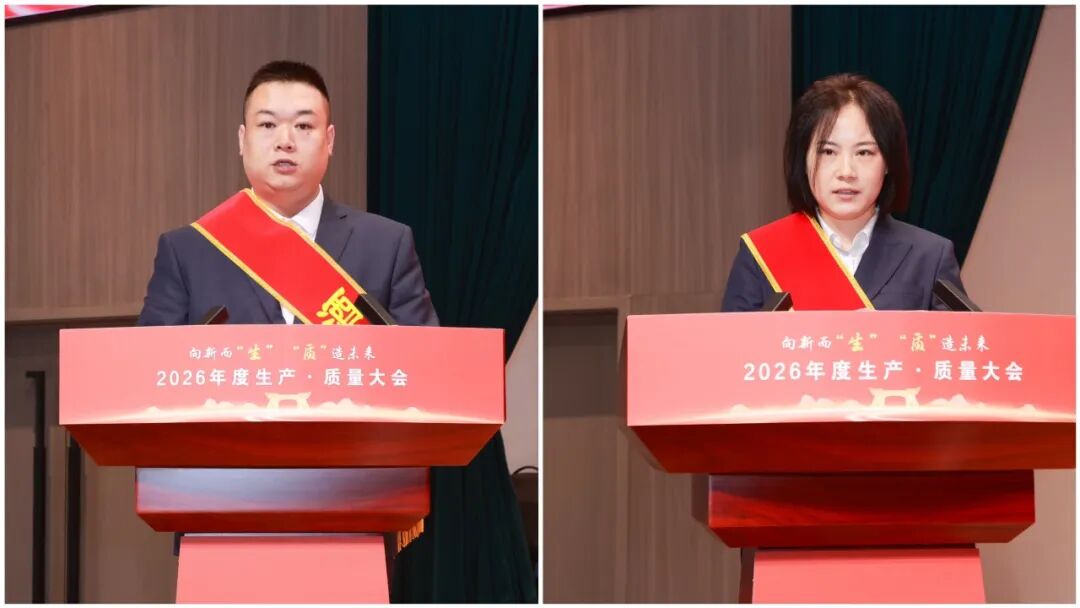 “崇道务本、敬商爱人,牢记使命、永葆匠心,以诚取信、以质取胜,锐意创新、追求卓越……”现场,全体参会人员对2026年度生产质量工作作承诺宣誓,以庄严的誓词表明质量决心,将以此为律,恪守不怠。