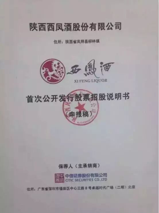 近日,陕西西凤酒股份有限公司招股书封面照被媒体曝光。业内人士表示,西凤酒正在申请A股上市,招股说明书将于近期正式披露。