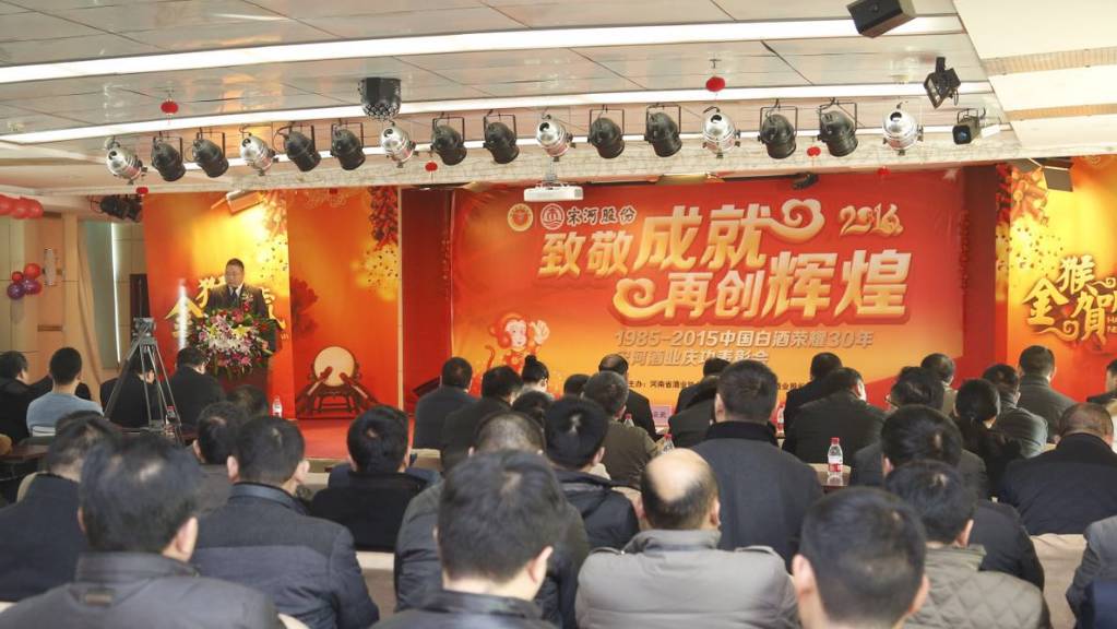 为传承白酒优秀文化和传统酿造技艺,引领豫酒回归消费本质,2016年1月18日,由河南省酒业协会主办、河南省宋河股份有限公司承办的“致敬成就·再创辉煌——中国白酒荣耀30年宋河酒业庆功表彰会”在宋河郑州总部隆重召开,省酒业协会会长熊玉亮、秘书长蒋辉,总工赵书民、宋河酒业领导及省内外二十多家新闻媒体悉数到场。