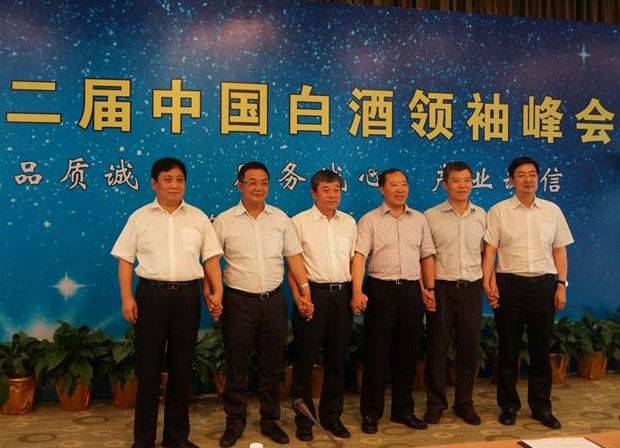 2012年第一届中国白酒领袖峰会,与会的酒企大佬有茅台集团董事长袁仁国、时任五粮液集团董事长唐桥、时任泸州老窖集团总裁张良、时任苏酒集团董事长杨廷栋、汾酒集团董事长李秋喜、时任沱牌舍得董事长李家顺。