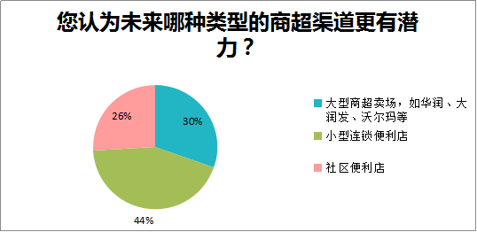 在受访的运作商超渠道的经销商中,35%的经销商以商超为主要渠道,这一渠道占其营收的一半以上。接近一半的经销商商超销量占全年的三分之一,这部分经销商大多同时拥有团购、餐饮、流通等多种渠道作为补充,商超渠道只是其树立价格和形象的一个途径。对另外16%的经销商而言,商超渠道所占比重越来越低,甚至已经考虑在未来两年“割肉”。