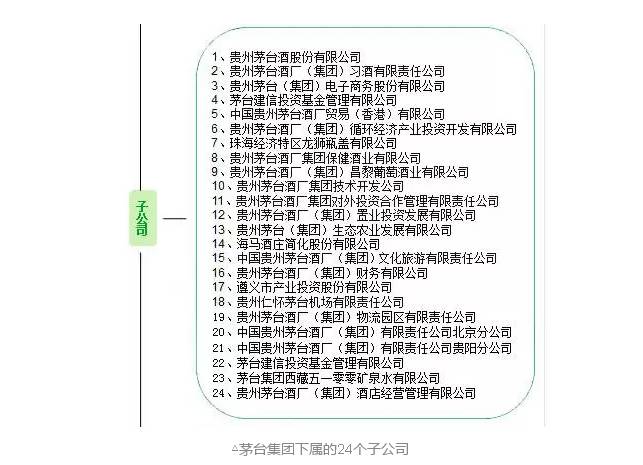 从茅台集团的官网可以查阅到,旗下有24家子公司: