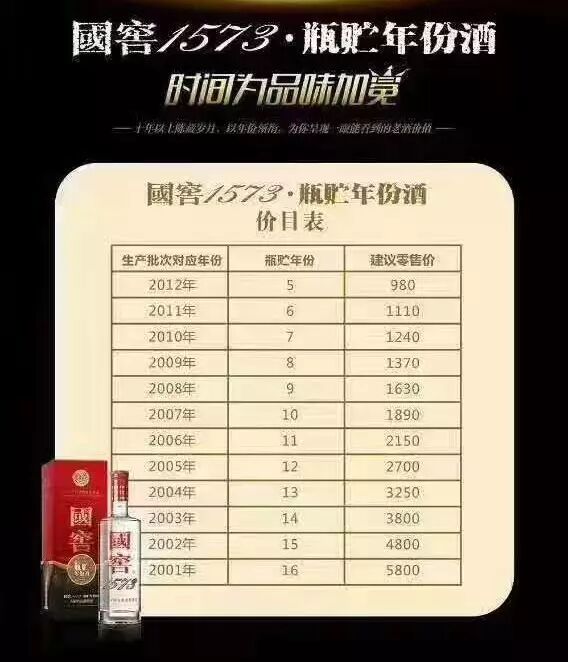 酒说记者进一步了解到,此前泸州老窖方面还曾明确给出过从2001年到2012年的国窖1573瓶贮年份酒的价目表,这无不表明国窖1573的价格和市场走势都在持续走高,年份酒升值明显的背后还是国窖1573品牌力和影响力的持续提升。