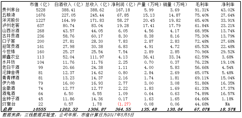 3、整体来看,名酒企业普遍增速上双,一方面得益于消费升级,产品结构的提升;另一方面,消费品牌苏醒,集中度提升,名酒其实获得了更大的市场占有。