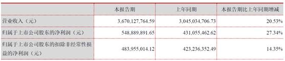 同时,古井贡酒发布2017上半年业绩报告称,1-6月份公司实现营业收入36.70亿元,比上年同期增长20.53%;实现归属于上市公司股东的净利润5.49亿元,比上年同期增长27.34%。
