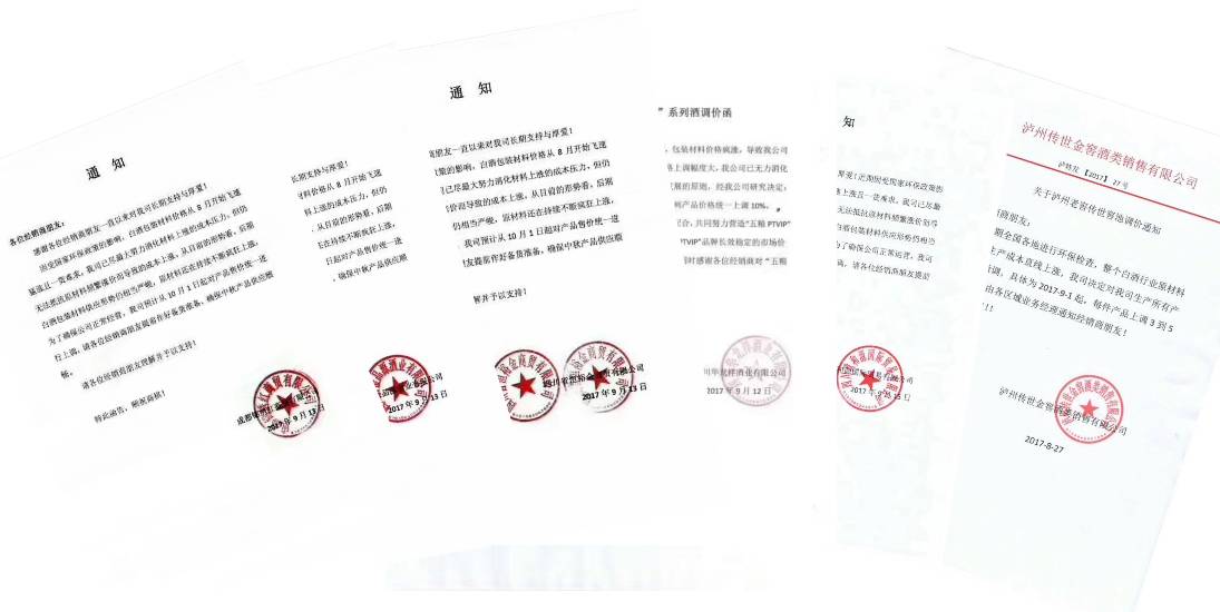 2.针对涨价原因,由于受国家环保政策环保政策影响,白酒包装材料价格自8月开始飞速猛涨且一货难求,由此导致的成本上涨使运营商面临巨大的经营压力;