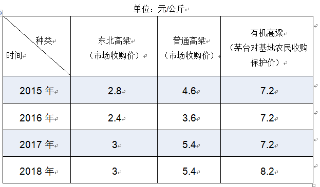 长期以来,茅台一直坚持以远高于市场平均价格的优惠条件收购有机高粱,10余万户农民成为直接受益者。 据了解,2017年,东北高粱市场价为3元/公斤,普通高粱市场价为5.4元/公斤,茅台对有机高粱基地农户收购保护价为7.2元/公斤,仁怀市、习水县、金沙县、遵义播州区的十多万农户仅种植有机高粱,户均收入8900元。2018年,茅台对有机高粱收购价上涨1元/公斤,达到8.2元/公斤,仅上涨部分,茅台对有机高粱采购成本将增加1个亿以上,仁怀市、习水县、金沙县、遵义播州区的十多万农户仅种植高粱,户均收入将达到1万元左右。