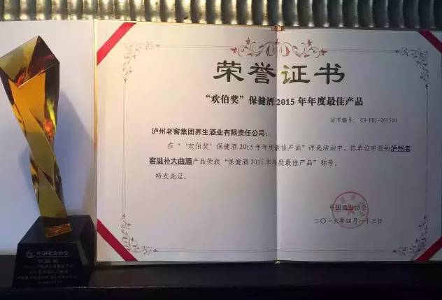 4月13日上午,中国酒业协会召开第五届理事会议第三次(扩大)会议,会上特别颁发了2015年年度保健酒最佳产品奖项——欢伯奖,泸州老窖滋补大曲酒获此殊荣。而“欢伯奖”堪称全国保健酒行业性评选最为严苛和权威的保健酒行业性评选奖项。