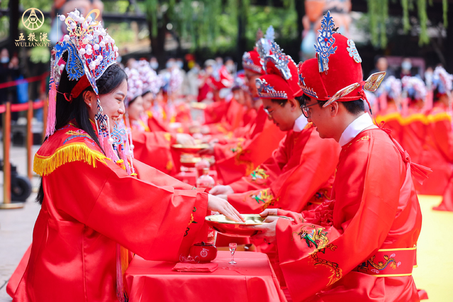 白酒,一直伴随着华夏文明的创造与传承,蕴含着中国智慧、中国精神、中国价值,具有永恒的时代魅力与独特的当代价值,自古以来便是婚嫁仪式必不可少的文化符号和元素,如纳聘酒、荣亲酒、交杯酒、婚宴酒等。良缘与美酒都是天作之合,顺天时、应地利,从独立个体走向你中有我、我中有你的交汇融合;良缘与美酒都是心之所向,相互依存、彼此成全,共同把平凡生活酿造成甘甜美酒;良缘与美酒都是时间之酿,人生最幸福是甘苦相依、携手到老,正如同陈年佳酿,醇厚悠长、各味谐调、恰到好处,历久弥香。