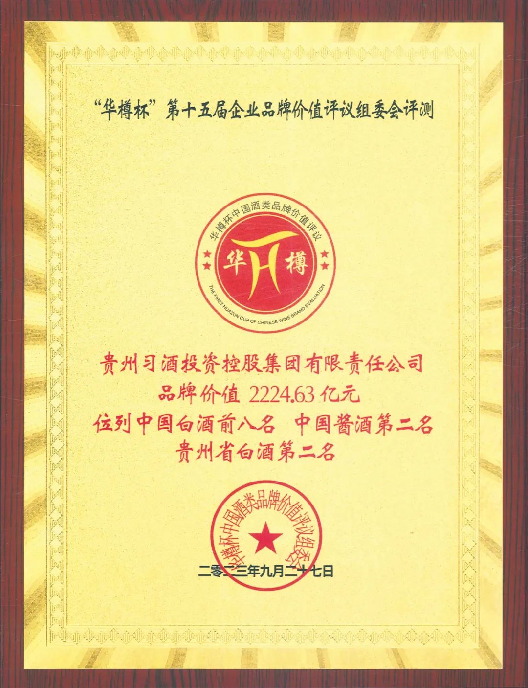 9月27日,中国酒类流通协会在北京国家会议中心发布了“华樽杯第十五届中国酒类品牌价值200研究报告”。贵州习酒品牌价值再创新高,以2224.63亿元位列中国白酒前八名、中国酱酒第二名、贵州省白酒第二名。“君品习酒”品牌价值达到1226.05亿元,位列全球酒类产品第十六名、白酒类第八名。习酒·窖藏1988品牌价值达到1042.45亿元。