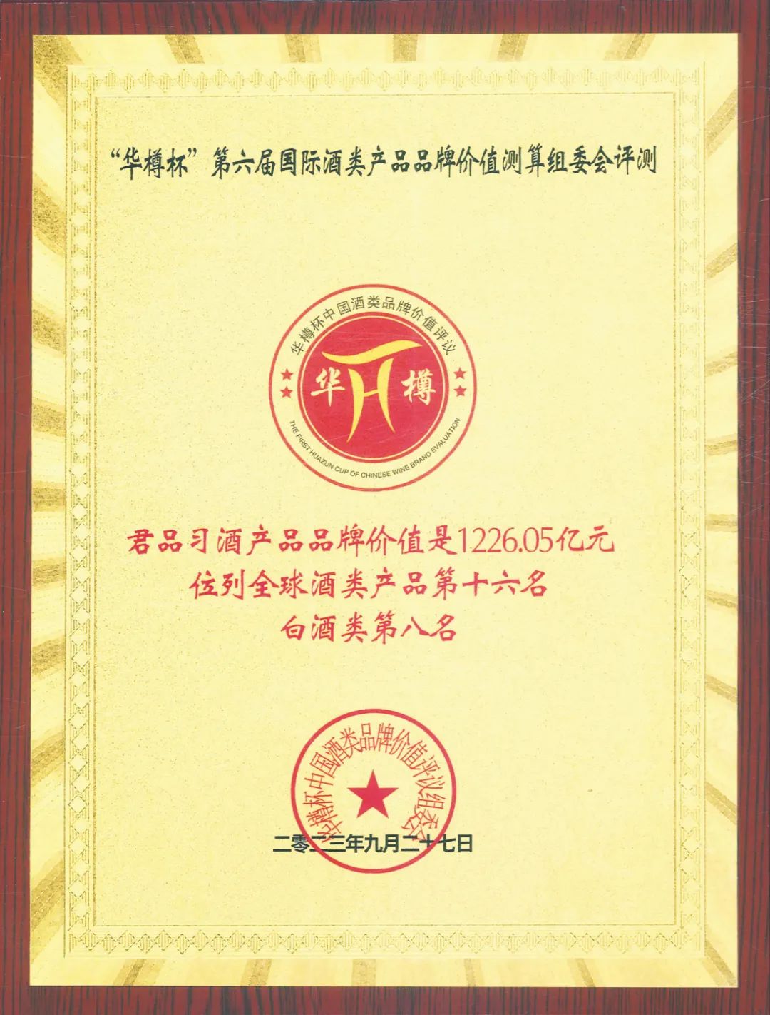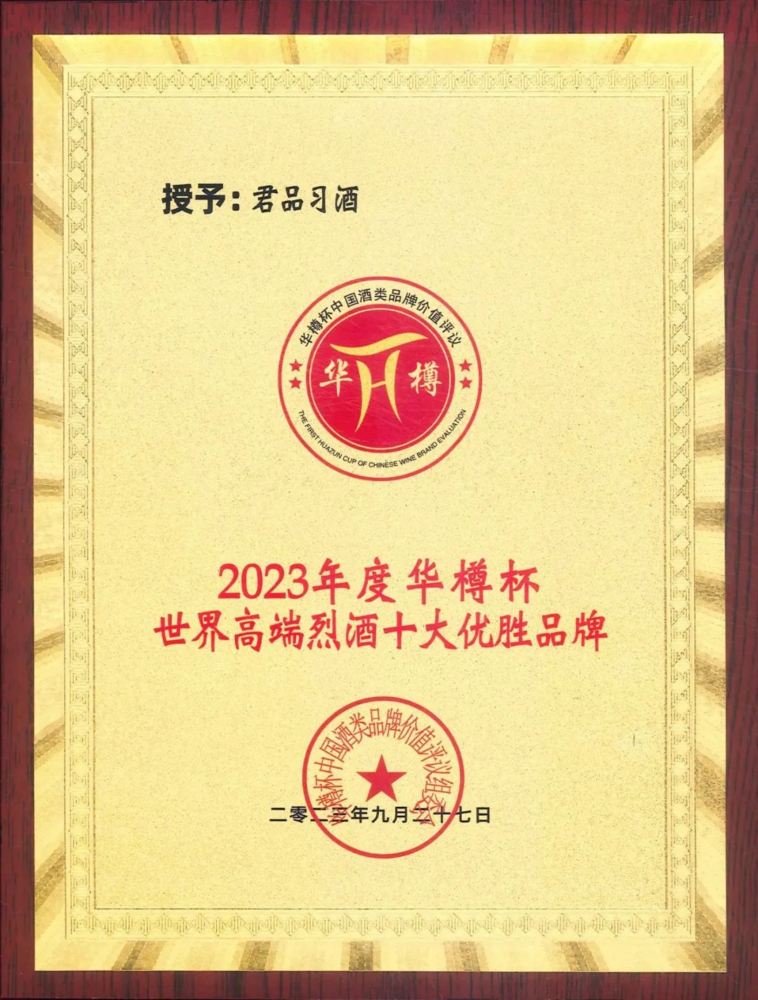 ▲君品习酒荣获“2023年度华樽杯世界高端烈酒十大优胜品牌”