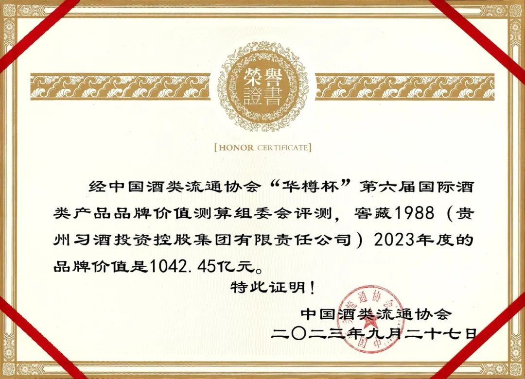 ▲习酒·窖藏1988品牌价值1042.45亿元