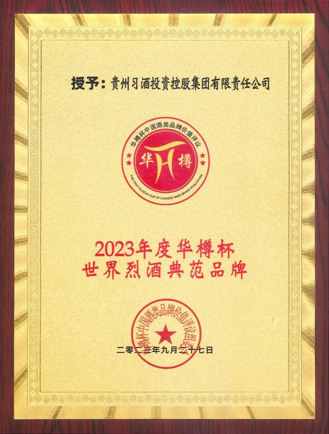 ▲贵州习酒荣获“2023年度华樽杯世界烈酒典范品牌”