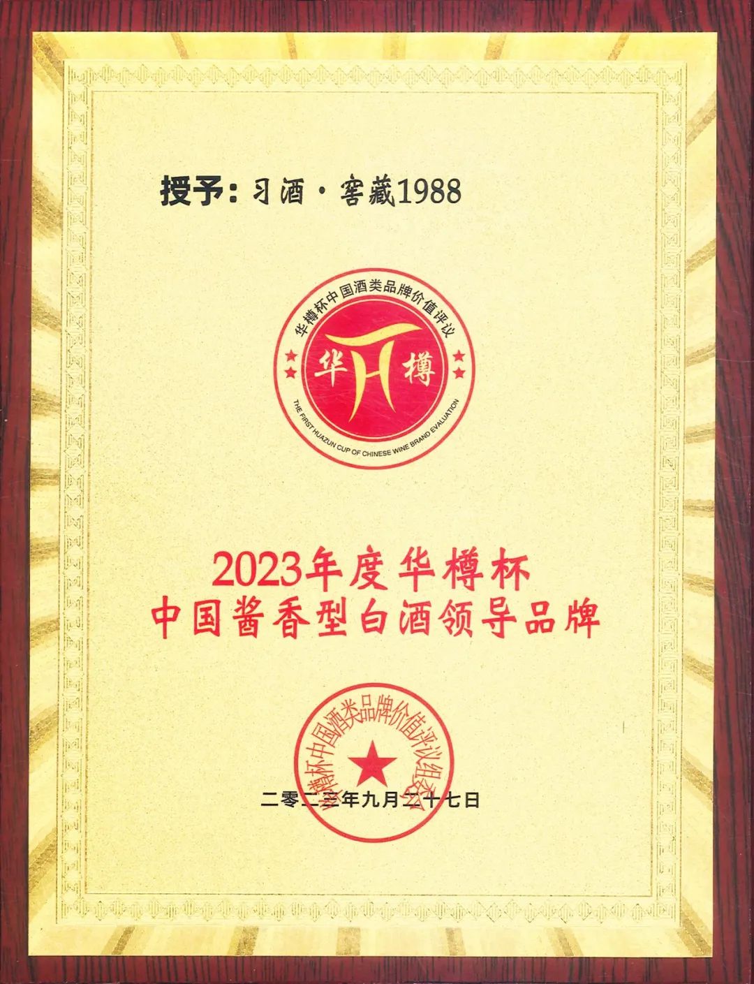 ▲习酒·窖藏1988荣获“2023年度华樽杯中国酱香型白酒领导品牌”
