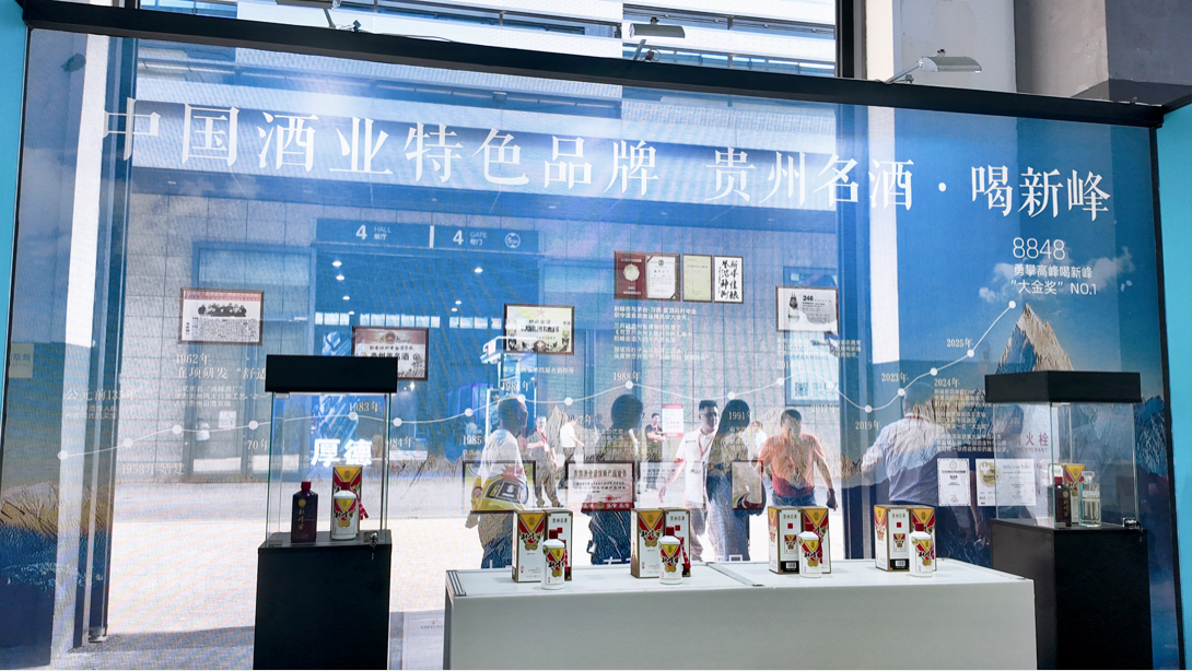 在第十四届中国(贵州)国际酒类博览会现场,一场特别的展览吸引了众多观众驻⾜。新峰窖酒作为贵州老名酒代表,与八大名酒一同亮相博览会法兰克福国际⼤奖赛展览专区,展示中国酱香白酒的卓越品质。