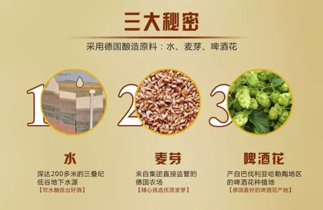 公元1516年巴伐利亚公国的威廉四世大公颁布了“德国纯啤酒令”,规定德国的啤酒只能以麦芽、啤酒花和水三种原料制作,截止到今天德国的啤酒有且只能增加第四种原料-酵母。这种严谨的酿酒规范成就了德国啤酒的独特品质——精纯!